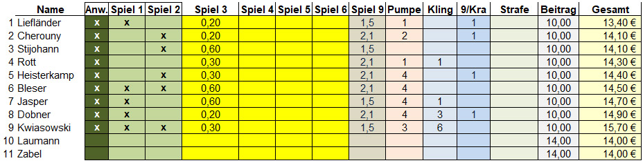 15.04.2026 Kegelergebnisse