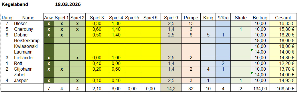 18.03.2026 Kegelergebnisse von Heinz Zabel · Veröffentlicht 22. März 2026 · Aktualisiert 22. März 2026 2026 – Medaillienspiegel 2026 – Einzelergebnisse Archiv 2025 – Medaillienspiegel 2025 – Einzelergebnisse 2024 – Medaillienspiegel 2024 – Einzelergebnisse 2026 – Medaillienspiegel 2026 – Einzelergebnisse Archiv 2025 – Medaillienspiegel 2025 – Einzelergebnisse 2024 – Medaillienspiegel 2024 – Einzelergebnisse Auch im März konnte Georg Rott zum Abendmeister gekürt werden. Herzlichen Glückwunsch.