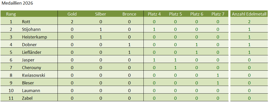 2026 – Medaillienspiegel 2026 – Einzelergebnisse Archiv 2025 – Medaillienspiegel 2025 – Einzelergebnisse 2024 – Medaillienspiegel 2024 – Einzelergebnisse 2026 – Medaillienspiegel 2026 – Einzelergebnisse Archiv 2025 – Medaillienspiegel 2025 – Einzelergebnisse 2024 – Medaillienspiegel 2024 – Einzelergebnisse